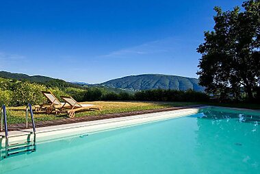Featuring a sun terrace and pool, Villa Rosy is an elegant stone structure with panoramic Umbrian countryside views.