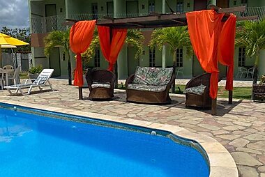 This oceanfront guest house features 2 swimming pools and fun waterslides overlooking Carapibus Beach.