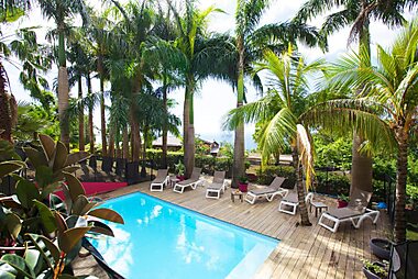 Situated in Bouillante, VILLA MARINA Appart Hotes features accommodation with a pool with a view, a balcony and sea views.
