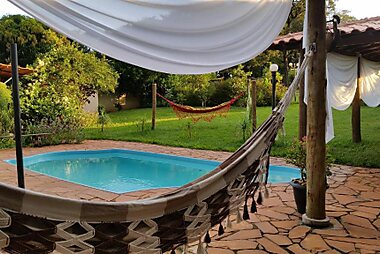 Chalé Lumiar Pousada features free bikes, outdoor swimming pool, a shared lounge and garden in Lagoa Santa.