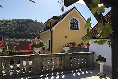 Overlooking Mikulov Castle and the South Moravian landscape, Penzion Baltazar is situated in the former Jewish quarter.