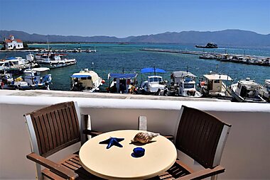 Pallas Pension is located on the seaside road right by Megalo Tigani Bay, a 3-minute walk from Elafonisos Port.