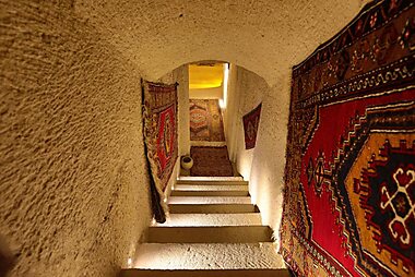 With natural stone walls in a 100-years old building, Sakli Konak is located in Uchisar, a typical Cappadocian village.