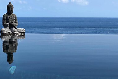 Set in Saint-Pierre, Suite INDIGO JACUZZI PRIVE PISCINE VUE MER acces cuisine laverie offers a balcony with pool and garden views, as well…