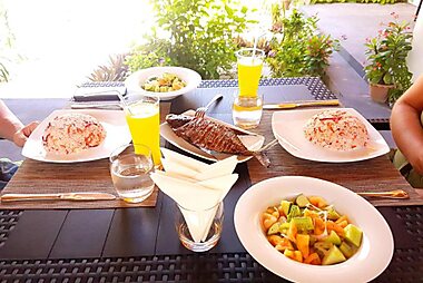 Alimas Inn features a restaurant, shared lounge, a garden and private beach area in Thoddoo.