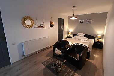 All units at Pension Andra's House feature a balcony, bathroom, seating area and wall-mounted flat-screen TV.