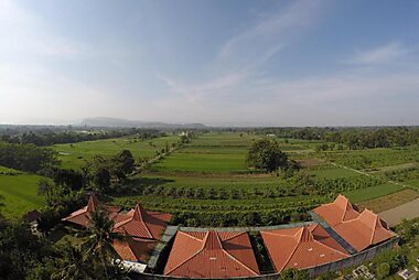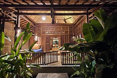 This lakefront property features traditional Indonesian-style architecture set amidst cool climate and greenery.
