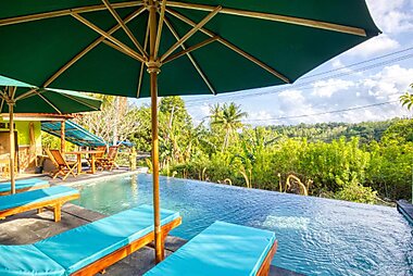 Featuring a balcony with pool views, an infinity pool and an open-air bath, The Cemok's Cottage can be found in Nusa Penida, close to…