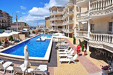 Offering an outdoor pool and a sauna, Golden Dunes Hotel is located in Vityazevo, just a 5-minute walk from the Black Sea beach.