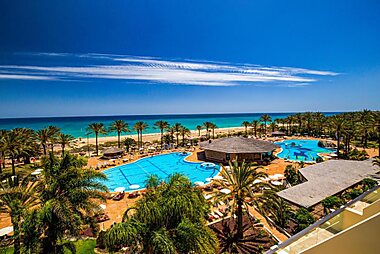 Iberostar Selection Fuerteventura Palace is set on Jandia Beach and offers outdoor pools with stunning sea views.