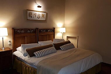 This elegant country ranch estate in Durazno offers a swimming pool, massage sessions and a living room with a fireplace.