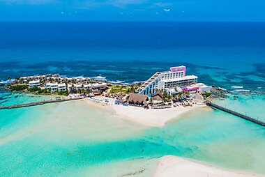 This resort is on Islote El Yunque Island and is connected to Isla Mujeres Cancun by a bridge.