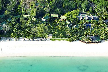 This luxurious resort on Mahe features air-conditioned villas overlooking the Indian Ocean.