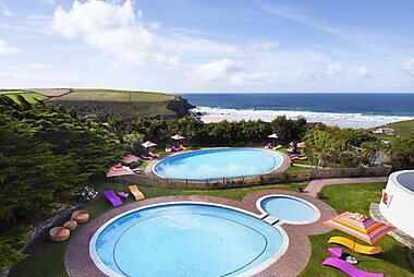 On a rugged cliff side in the Cornish village of Mawgan Porth, Bedruthan Hotel & Spa offers wonderful views across the Atlantic.