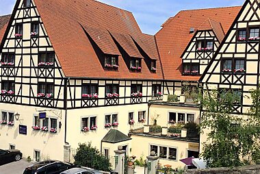 Surrounded by meadows and forests, this traditional hotel in Steinsfeld offers Franconian cuisine and Bavarian beers.