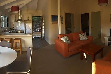 Set on 4 acres of native coastal gardens, Sandpiper Cottages offers pet friendly beachfront accommodation just a short walk through sand…