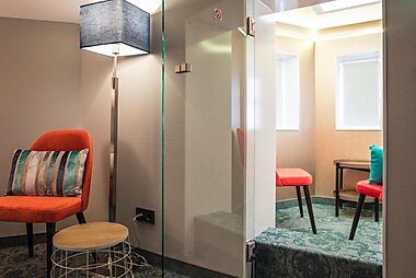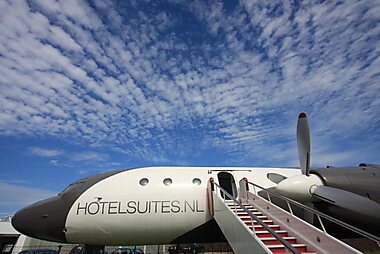 This unique aeroplane suite still has a fully-equipped cockpit and boasts a luxurious bathroom with sauna, shower and spa bath.