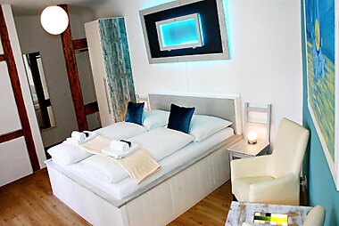 Hotel Zum Goldenen Anker offers elegant rooms in a listed building in the heart of medieval Bamberg.