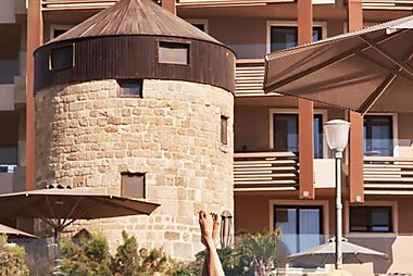 Looking across Rhodes’ medieval city, this 5-star hotel offers delightful gardens, an outdoor pool and full spa and beauty treatments.