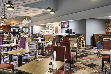 This modern hotel is just off the M60 motorway, 10 miles from Manchester city center. It has free secure parking and good family facilities.