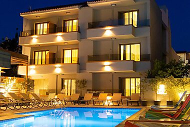 Just off the main street of Skiathos Town, this 4-star hotel offers a lovely courtyard with pool and sun-lounger terrace.