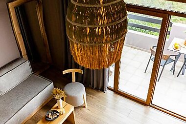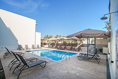 Built on a hillside and overlooking the sandy beach of Megali Ammos, the Aegean Suites is a delightful 5-star hotel.