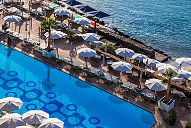 Pullman Cannes Mandelieu is an upscale hotel with views of the Cannes Bay and Lerins Islands.