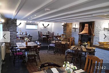 Located in the pretty country village of Lea, this 15th-century inn has a traditional bar and restaurant with wooden beams and 3 real fires.