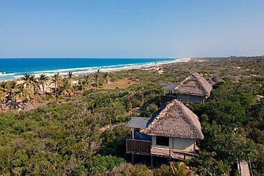 Set on a private beach in the Vilanculos Coastal and Wildlife Sanctuary, Dugong Beach Lodge has an infinity pool on a large furnished deck…