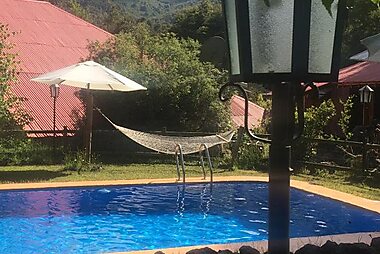 Featuring pool views, Cabaña privada en Shangri-la, Valle Las Trancas features accommodation with a seasonal outdoor swimming pool and a…