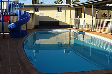 Kings Motor Inn & Steakhouse boasts an outdoor saltwater swimming pool with a children’s waterslide.