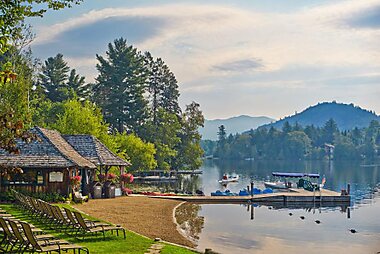 Boasting panoramic views of the Adirondack Mountains, this resort located directly on Mirror Lake has on-site dining and a spa.