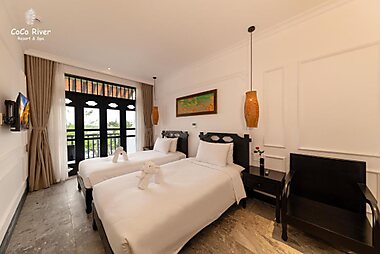 Coco River Resort & Spa is located along Thu Bon River in Quang Nam Province. Free Wi-Fi are provided in all rooms.