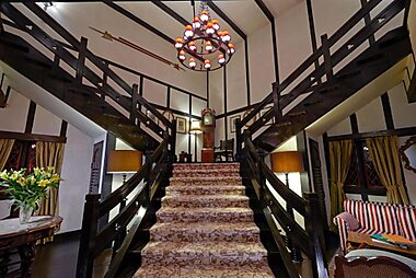 A charming country house inspired by English heritage, The Lakehouse features wooden ceiling beams and four-poster beds.