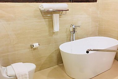 Enjoying cool weather and beautiful scenery, Casadela Rosa in Cameron Highlands provides rustic country-style rooms with a bathtub.