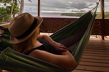 Located on a cliff-top terrace overlooking Tufi Harbor, this boutique resort offers 180-degree panoramic views.