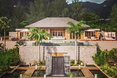 Spectacular Indian Ocean views and picturesque hillside location await guests at this luxurious resort on Mahe Island.