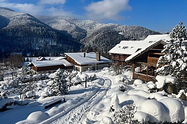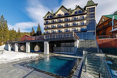 Hotel "Vedmezha Gora Family Resort & Spa" is located in the area of Carpathians, not far from the Bukovel ski resort.