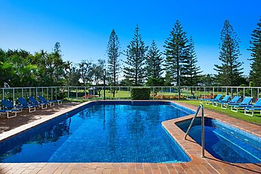 Relax by the heated outdoor pool and spa pool at Pelican Cove, only 15 minutes’ drive from Surfers Paradise.