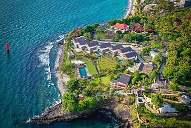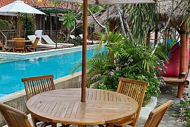 The beachfront Puri Mas Boutique Resort & Spa is located in the fishing village of Mangsit Bay on Lombok Island.