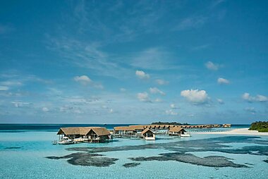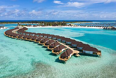 Velassaru Maldives offers luxurious beachfront and over-water accommodations with uninterrupted ocean views.
