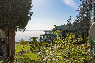 Overlooking the shoreline of Qualicum Beach, this resort offers units with a private balcony or patio.