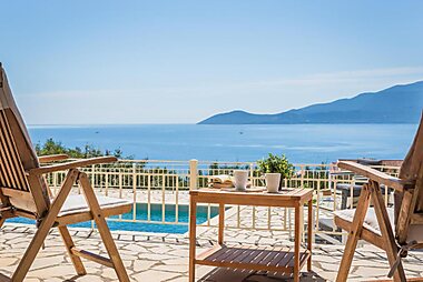 Located in Chavriáta, this villa features an outdoor pool. The property features views of the sea and is 12 mi from Sami.