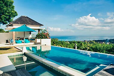 Lembongan Sanctuary Villas features cozy villas with private pools overlooking the sea, Bali mainland and Mount Agung.