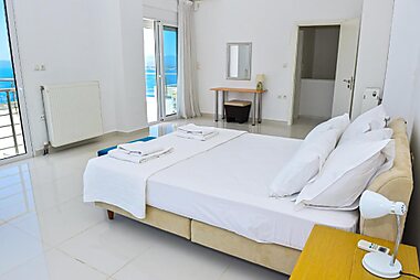 Offering a 1500 m² garden with a hammock and shade, Messinian Blue Seaside Villa enjoys a beachfront location in Kalamata and offers air…