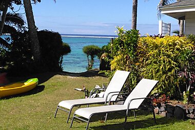 Surrounded by lush tropical gardens, Little Oneroa offers self-contained accommodation with views over Muri Lagoon.