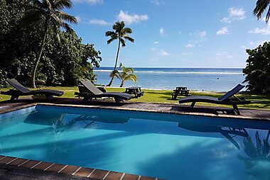 Set alongside a white sandy beach, Rarotonga Villas overlooks a beautiful blue lagoon and the Pacific Ocean.