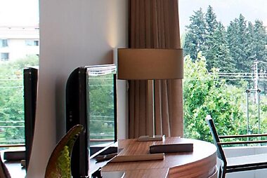 The newly built D Maris Bay is set in a peaceful bay surrounded by pine forests and mountains.