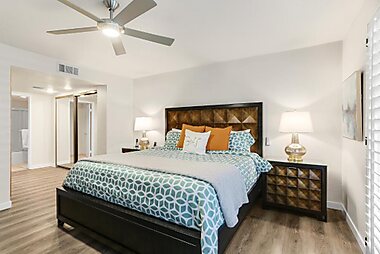 Surrounded by beautiful desert scenery in the mountain foothills, Desert Vacation Villas are just a 5-minute drive away from Central Palm…