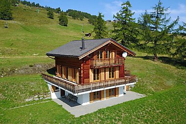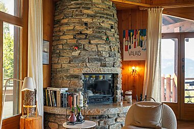 Chalet Brune-Haute features accommodations with fireplace, balcony and views of the Valais Alps, a 5-minute walk from the Anzère Ski Area.